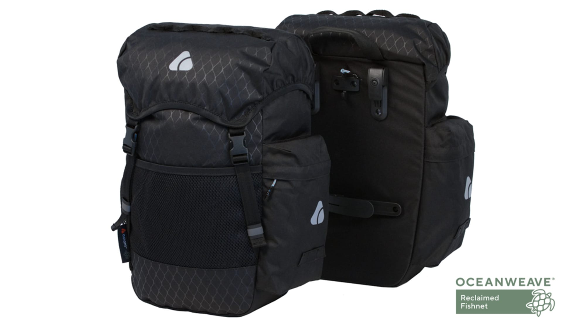 Not too big, not too small, these panniers are just right. For bike commuting, they have enough room for a laptop bag, lunch and change of clothes. For bike touring, you can fit a compact sleeping bag, along with weekend basics. Plus, Oceanweave fabric is made from reclaimed and recycled fishnets to help protect the world’s oceans and marine life.